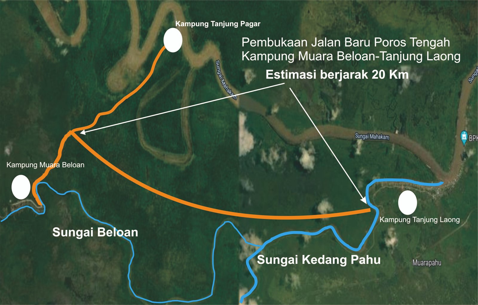 Khusus Muara Beloan diperkirakan akses jalan dari dan ke kampung sekitar 9 km. Koneksi jalan PT. Teguh Sinar Abadi (TSA) dan Kampung Muara Beloan sudah dilakukan pengurukan. Bahkan badan jalannya sudah diperpendek. Supaya lebih mudah, cepat dan tidak mengeluarkan biaya besar. Jalan akses ini adalah kewenangan Pemkab Kubar. Sejak 2021 sampai 2024 telah dibangun secara bertahap. Terakhir 2024, dilakukan semenisasi sekitar 1 km lebih. Diperkirakan menyisakan 6-7 km hingga sampai ke Jembatan Sei Sermaung, Muara Beloan.