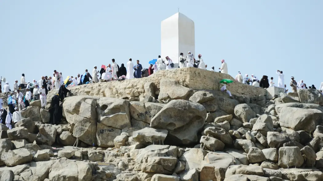 Jabal Rahmah adalah Bukit Kasih Sayang di Arafah adalah situs bersejarah penting dalam Islam. Diyakini sebagai tempat bertemunya kembali Nabi Adam dan Hawa. Setelah dipisahkan dari surga. Melambangkan pertemuan, pengampunan, dan kasih sayang Allah.