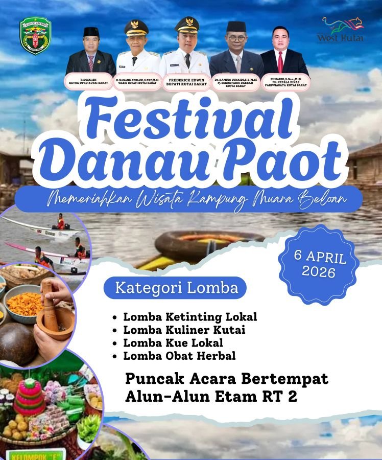 SENDAWAR, KALTIM PERS – Berbagai ajang lomba di Kampung Muara Beloan, Kecamatan Muara Pahu, Kutai Barat (Kubar) kembali digelar. Ajang pariwisata tahunan yang diagendakan Dinas Pariwisata Kubar ini, bertajuk “Festival Danau Paot” akan dilaksanakan dua hari dan puncaknya, Senin, 6 April 2026.